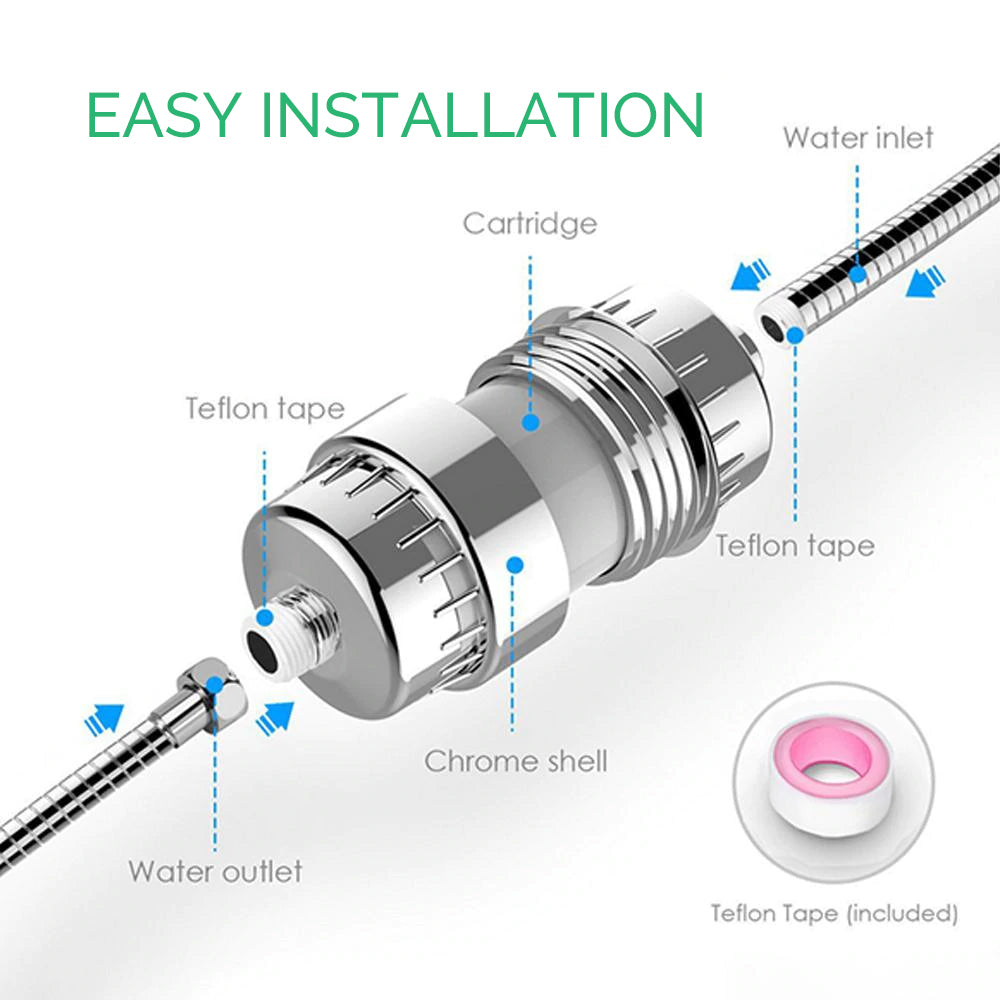 Install this shower head filter for hard water on your own with ease. No tools are required, just a hand tighten connection and a bit of plumber’s tape that is included. No leaks, no cracks. Suitable for wall-mounted, handheld, rain, and combo shower heads!